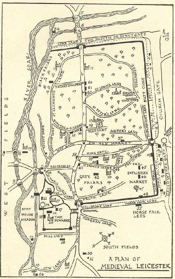 Medieval Leicester Map - Date unknown, but about 600-700 years old